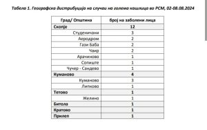 Në qarkullim janë tre epidemi të paraqitura në nivel të territoreve në Shkup, Kumanovë dhe Tetovë.