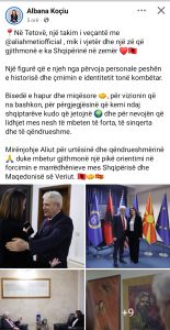 Koçiu shprehu mirënjohje Aliut për urtësinë dhe qëndrueshmërinë , duke mbetur gjithmonë një pikë orientimi në forcimin e marrëdhënieve mes Shqipërisë dhe Maqedonisë së Veriut.