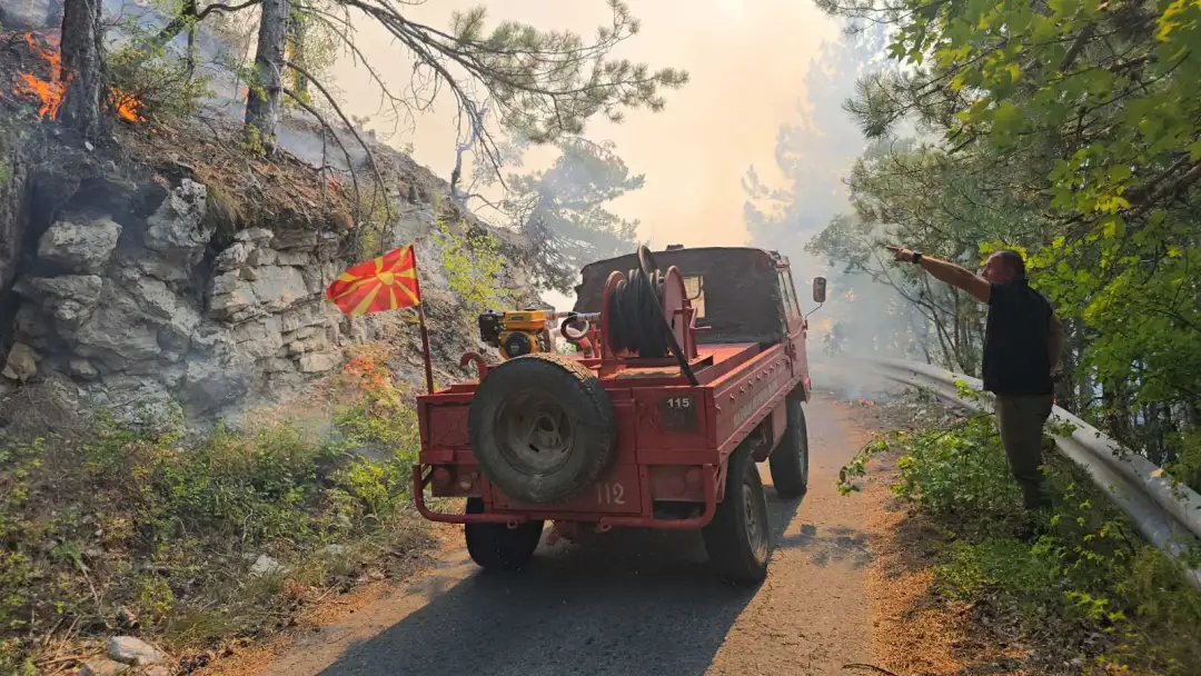 “Një vijë zjarri që shtrihej jashtëzakonisht pjerrët mbi rrugën e asfaltuar që të çon nga Shkupi në Liqenin Kozjak përmes fushës së gjuetisë Jasen u shua me sukses nga Ujqërit e armatës, duke shpëtuar një sipërfaqe më të madhe pylli me gjelbërim”, thotë Stojanov.