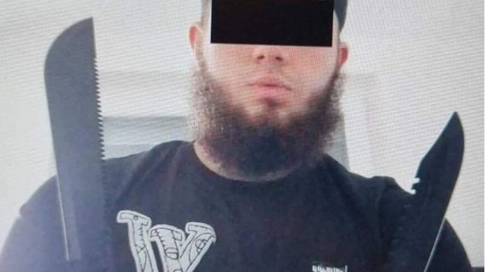 Në shtëpinë e prindërve të të dyshuarit, përveç legjitimacionit të rremë të policisë dhe 21 mijë euro para të falsifikuara, në shtëpinë e prindërve të të dyshuarit janë gjetur hanxhar, thika dhe eksplozivë funksionalë, përfshirë edhe detonatorë.