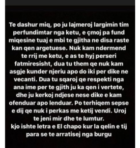 Më poshtë po iu sjellim postimin e plotë të këngëtarit, Ermal Fejzullahu.
