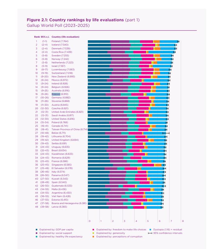 Renditja e lartë e Kosovës sugjeron një perceptim relativisht pozitiv të jetës, pavarësisht sfidave ekonomike dhe institucionale që vazhdojnë të ekzistojnë.