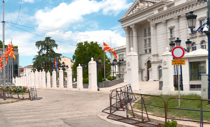 Gardhi 2,5 metra i lartë përreth godinës së qeverisë u vendos në vitin 2015, kur ndërtesa mori një fasadë të re barok. Kostoja e atëhershme e tyre ishte rreth 700 mijë euro. / Alsat.mk