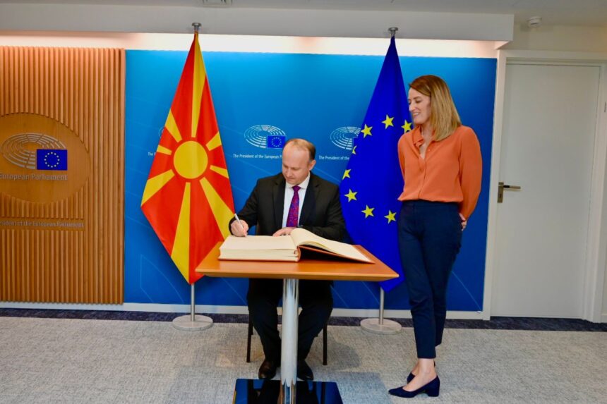Të dy palët u pajtuan se vendosmëria e përbashkët dhe mbështetja nga BE-ja janë dëshmi e angazhimit të sinqertë për realizimin e perspektivës evropiane të Maqedonisë së Veriut. Znj. Metsola riafirmoi mbështetjen e Parlamentit Evropian për përpjekjet e Maqedonisë së Veriut drejt integrimit evropian, shkruan Gashi.