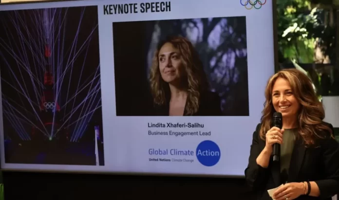 Për të shënuar rastin e nënshkrimit nga “World Aquatics”, Lindita Xhaferi-Salihu, drejtoresha e angazhimit të biznesit për veprimin global të klimës së OKB-së, mbajti një fjalim kryesor.