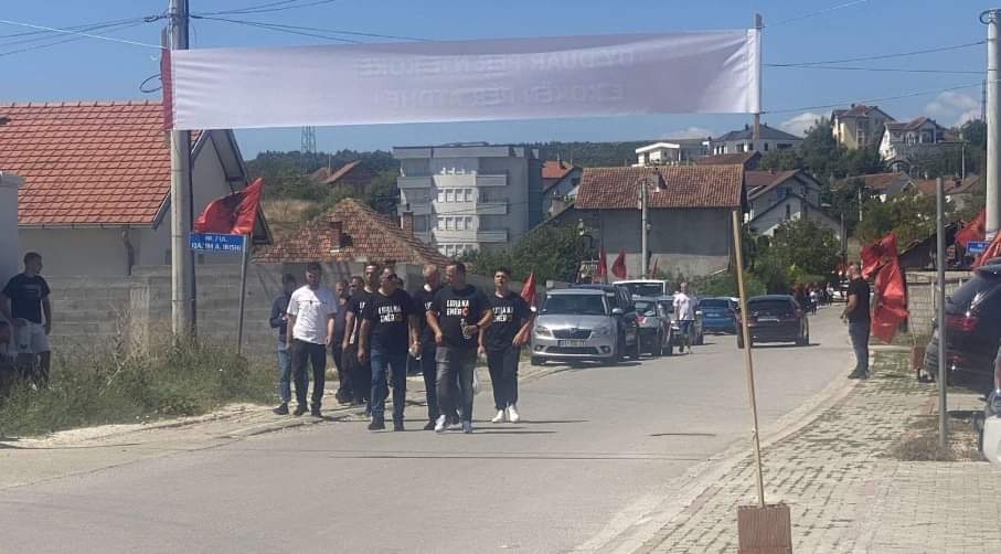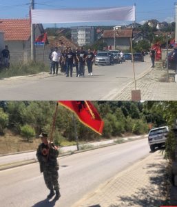 Përgjatë rrugës nga Skenderaj deri në Klinë të Ultë bien në sy shumë flamuj kombëtarë. Disa të rinj po mbanin mbishkrimet “Liria ka emër” në bluzat e tyre.