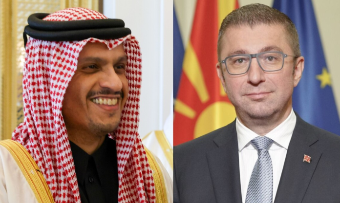 Kryeministri Hristijan Mickoski sot zhvilloi një bisedë telefonike me kryeministrin dhe ministrin e jashtëm të Shtetit të Katarit, Sheikh Mohamed bin Abdulrahman Al-Thani.
