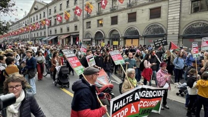 Mijëra njerëz marshuan në Gjenevë të Zvicrës për të protestuar kundër sulmeve të Izraelit ndaj Gazës dhe Libanit, raporton Anadolu.