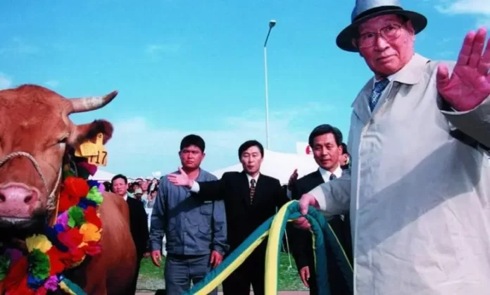 Skena nuk mund të ishte më surreale. Jemi në vitin 1998, më saktë në 27 tetor. Një makinë e zezë luksoze që mbante Chung Joo Jung vihet në krye vargu kamionësh si të ishte një procesioni për në botën tjetër. Ishin dhjetra të tillë Hyundai të projektuar posaçërisht për të mbajtur deri në dhjetë lopë të majme secili, të cilat ndiqnin makinën e zezë luksoze në një rrugë që askush nuk e priste se do të miratohej ndonjëherë.