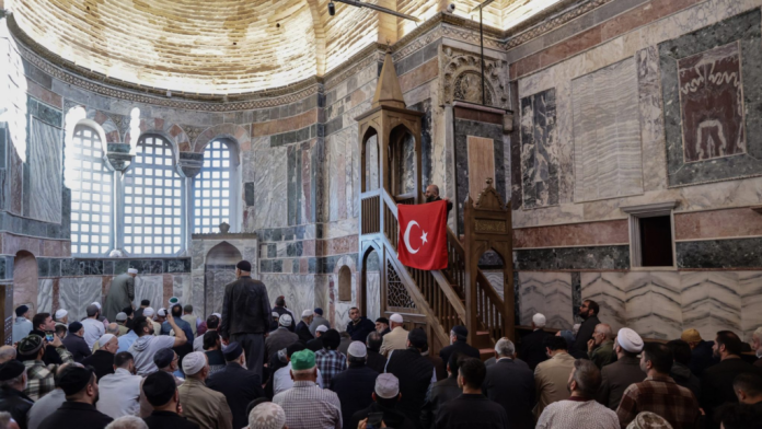Presidenti Rexhep Taip Erdogan, i cili është kreu i një partie me rrënjë islamike, e ktheu Hagia Sophia-n nga një muze në një xhami në vitin 2020 në një ceremoni ku morën pjesë dhjetëra mijëra njerëz.