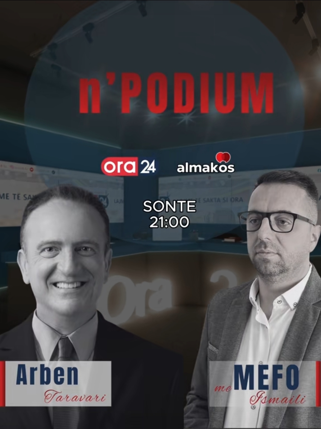 Sonte në ora 21:00, në emisionin “n’Podium me Mefon” në ORA24.tv, i ftuar do të jetë lideri i Aleanca për Shqiptarët, Arben Taravari, për të folur mbi zhvillimet më të fundit politike në vend.