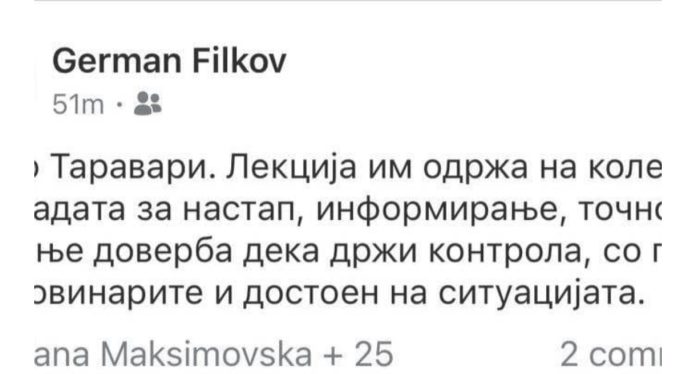 “Bravo për Taravarin! U mbajti leksion kolegëve të qeverisë për paraqitje, informacion, saktësi. Krijon përshtypje se mban nën kontroll situatën, ka respekt ndaj gazetarëve dhe është i denjë për një situatë të tillë,” ka shkruar Filkov, duke theksuar menaxhimin e shkëlqyer të krizës nga ana e Taravarit.