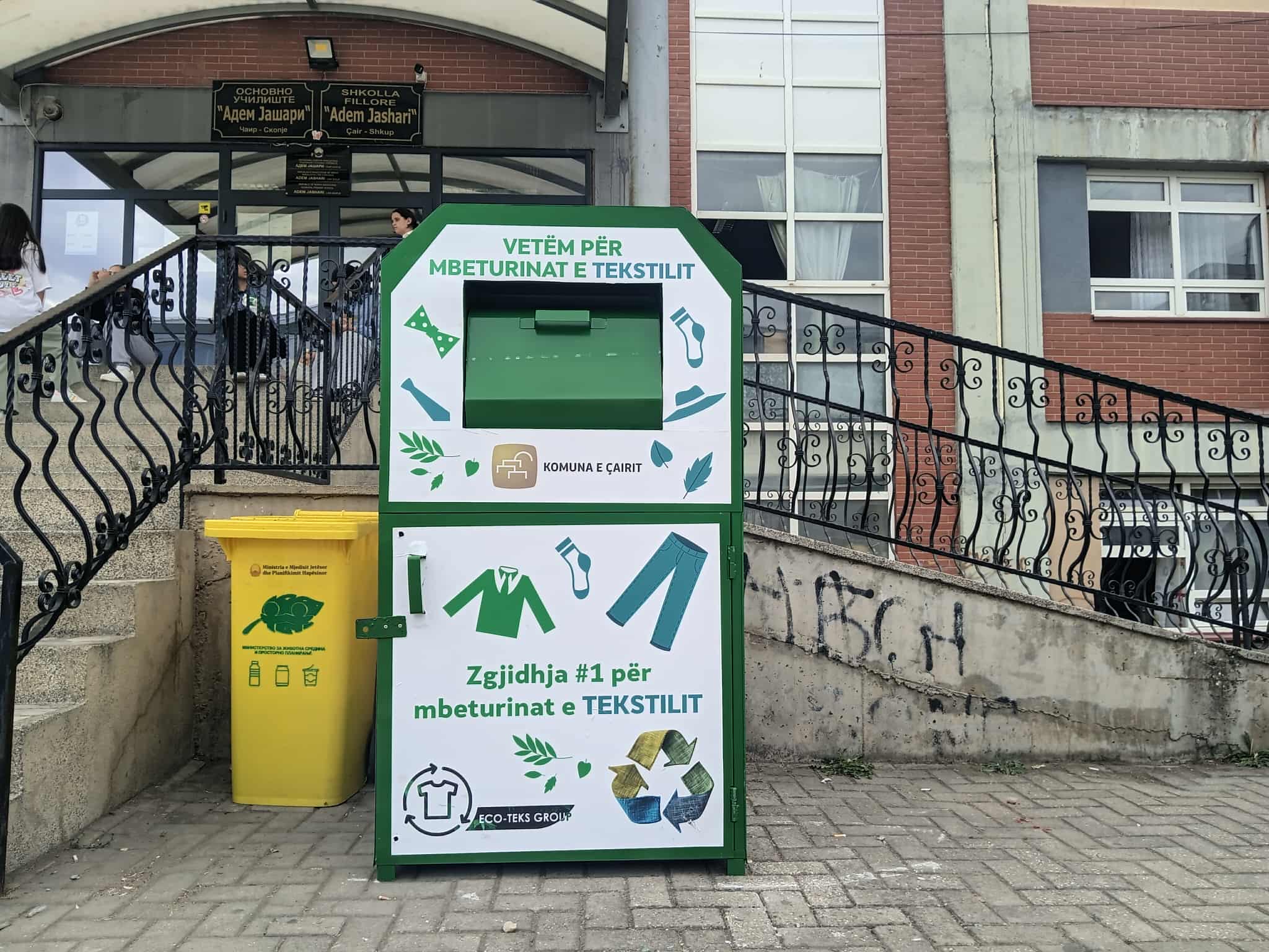Kontejnerat e mbeturinave u dhuruan nga kompania “Ekotekst”, e cila merret me mbledhjen, selektimin dhe riciklimin e mbeturinave tekstile. Punëtoritë përfshinë nxënës të klasës së shtatë, të cilët u njohën me mënyrat e trajtimit të mbeturinave tekstile dhe ndikimin e tyre në mjedis.