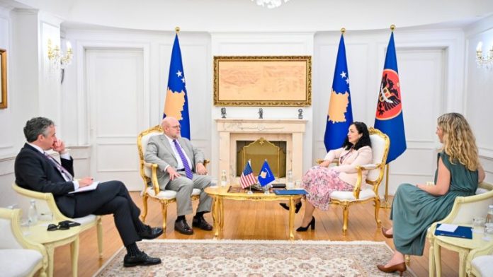 Presidentja e Kosovës, Vjosa Osmani ka takuar ambasadorin e Shteteve të Bashkuara të Amerikës, Jeff Hovenier, ndërsa kanë biseduar për zhvillimet e fundit në vend.