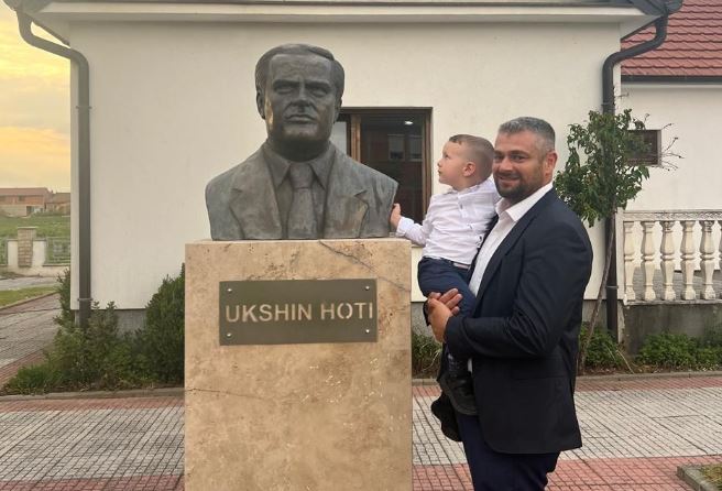 Hoti me të birin e tij tek busti i të atit të tij, Ukshin Hoti tha se ftesën për t’iu bashkuar listës së deputetëve në LVV e pranoi si detyrë dhe shërbim, duke u zotuar se kontributi i tij do të jetë përpjekje e pandalshme në sfidat aktuale: forcimin e shtetit dhe mbrojtjen e interesit kombëtar