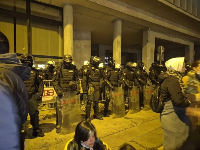 Policia kundër trazirave në Serbi u kundërpërgjigj mbrëmë dhe filloi të rrahë disa studentë të Novi Sadit të cilët kanë bllokuar të gjitha hyrjet në Bashkinë e qytetit që nga mesnata dhe disa prej tyre mbetën të lënduar, raporton N1info.