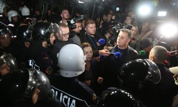 Deputetja Albana Vokshi dhe deputeti Flamur Noka janë përplasur me policët, teksa protesta në rrethrrotullimin e ish-sheshit “Shqiponja” është tensionuar.