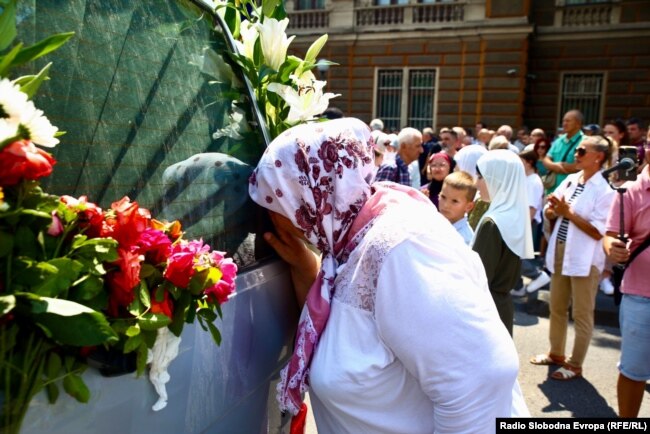 Rrugës për në Qendrën Përkujtimore Potoçari, ku edhe do të varrosen më 11 korrik, autokolona u ndal për pak kohë para ndërtesës së Presidencës së Bosnje e Hercegovinës në qendër të qytetit.