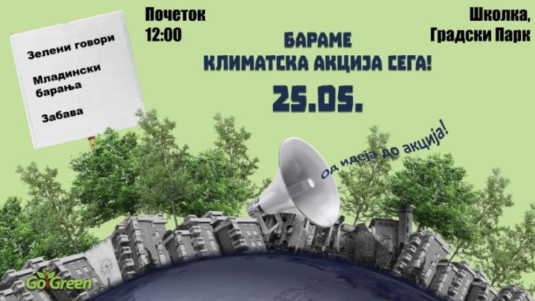 Në Parkun e Qytetit në Guaskë sot do të mbahet ngjarja “Kërkojmë aksion klimatik tani!” në të cilin do të dërgohet porosi për ndërmarrjen e aksionit për parandalimin nga ndikimet negative klimatike mbi shtetin tonë, në organizim të “Gou grin Shkup”.