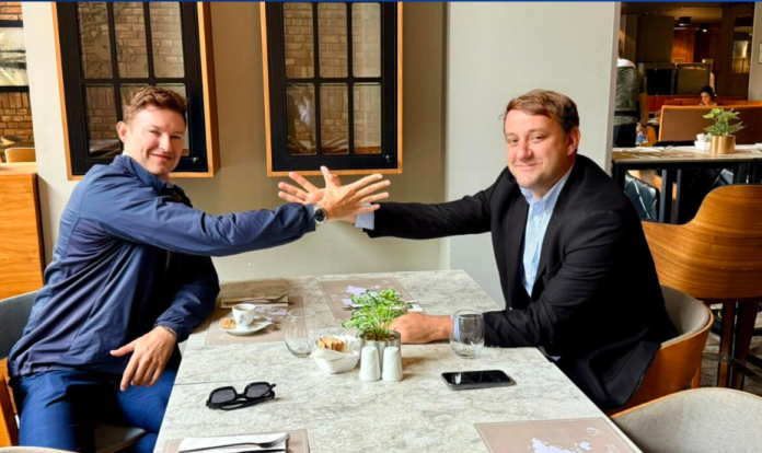“Një kafe e këndshme këtë mëngjes me Ambasadorin e Kosovës, mikun tim Florian Qehaja, për të ndarë një moment miqësie dhe për të festuar së bashku fitoret tona të përbashkëta. Dy flamuj, dy zëra, një shqipe. Diplomacia është më e bukur kur buron nga zemra”,ka shkruar Meidani.
