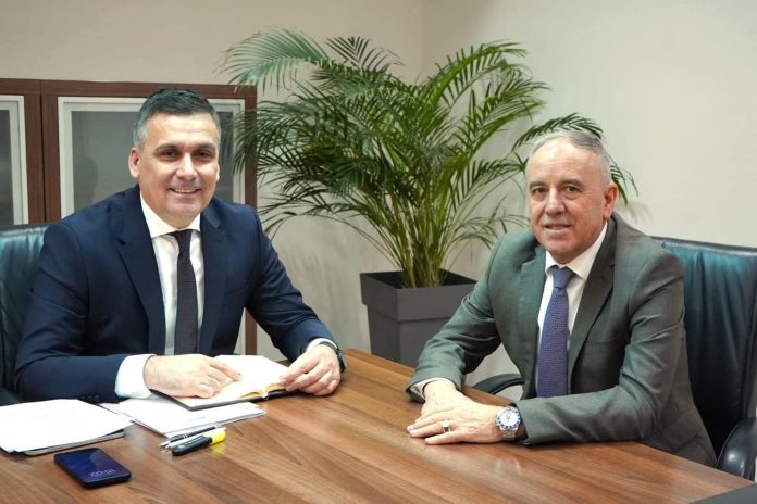 Kryetari i Komunës së Strugës, Mendi Qyra, zhvilloi një takim pune me ministrin e Mjedisit Jetësor dhe Planifikimit Hapësinor, Muhamet Hoxha, ku u diskutua për projektet infrastrukturore që po realizohen me mbështetje financiare të drejtpërdrejtë nga Ministria.