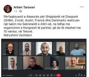 Të dielën më 10 nëntor Aleanca për Shqiptarët e drejtuar nga Arben Taravari do të mbajë kongresin e partisë. Një ditë më parë në rrjetet sociale, i pari i ASH-së, njoftoi se ka zhvilluar edhe një takim online me Sekretarët e partisë në diasporë.
