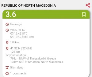BallinaKryesore Tërmet në Maqedoni! March 16, 2025 0 363 FacebookTwitterPinterestWhatsApp Disa minuta më parë janë shënuar dridhje të tokës në Maqedoninë e Veriut. Sipas aplikacionit Last Quake, epiqendra e tërmetit ka qenë 13 kilometra nga Strumica. Fuqia e dridhjeve ka qenë 3.6 ballë sipas Ruhterit/ Ora24.tv 9 Artikulli paraprakÇështja e të zhdukurve, Andin Hoti kërkon që BE-ja ta kushtëzojë SerbinëArtikulli tjetërTragjedia në diskotekën në Koçan, ambasadori Meidani shpreh ngushëllime Lajme të ngjajshme Lajme Ibrahimi: Ne për Lubotenin i kemi ndarë 2 milionë euro për ujë, ata i kanë ndarë 5 milionë euro për Tarçullovskin Kryesore Njeri nënkalim, tjetri zgjerim – Osmani dhe Mexhiti tregojnë si do ta zgjidhin problemin me “Cvetan Dimovin” Lajme Rigjykimi për rastin “Lidhja ndërkombëtare”, pesë vite burg për Boki 13 Your browser does not support the video tag. Your browser does not support the video tag. Lajmet e fundit Lajme Ibrahimi: Ne për Lubotenin i kemi ndarë 2 milionë euro për ujë, ata i kanë ndarë 5 milionë euro për Tarçullovskin Kryesore Njeri nënkalim, tjetri zgjerim – Osmani dhe Mexhiti tregojnë si do ta zgjidhin problemin me “Cvetan Dimovin” Lajme Rigjykimi për rastin “Lidhja ndërkombëtare”, pesë vite burg për Boki 13 Lajme Valbona Adili Emini: Tetori Rozë, muaj i forcës dhe vetëdijes për shëndetin e grave Fun Ja pse shëtitjet në vjeshtë janë antidoti më i mirë kundër stresit Më shumë