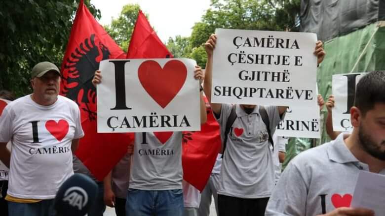 Në letrën drejtuar ambasadës greke në Shkup, të cilën e lexoi Afan Sherifi, thuhet se shqiptarët e Maqedonisë së Veriut protestojnë për të drejtat e shqiptarëve të Çamërisë, të cilët siç tha ai, u masakruan dhe u përzunë nga trojet e tyre me gjenocid nga ushtria greke EDES e drejtuar nga Napoleon Zervas në vitin 1944.