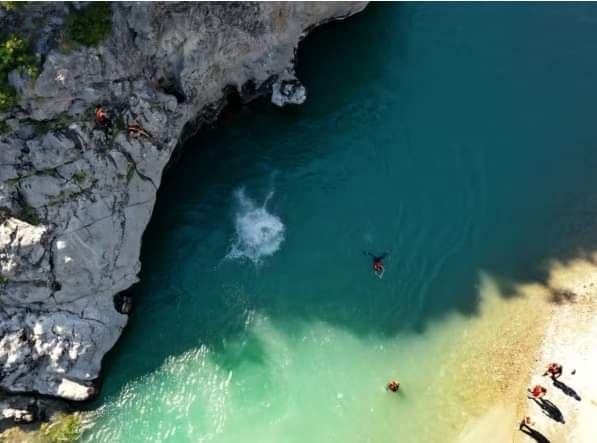 Disa turistë në lumin Vjosa afër Përmetit, Shqipëri – Fotografi nga arkivi.