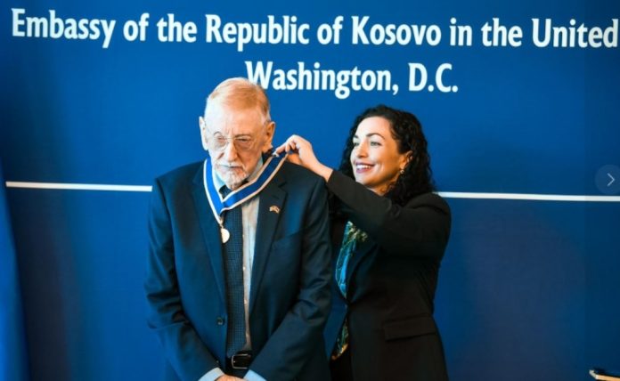 “Për këtë kontribut, sot, në Washington D.C., pata nderin që, në emër të Republikës së Kosovës, t’i dekoroj me Urdhrin e Lirisë dhe Urdhrin e Pavarësisë”.